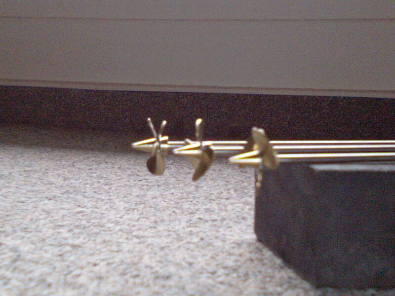 Nun bin ich echt einen großen Schritt weiter. Als ich meine Schrauben und Ruder abgeholt habe, habe ich einen passenden Satz Wellen gesehen. Das beste daran ist, daß sie gleich ein Gewinde hatten. Ich hatte nämlich schon bammel vor dem selbst schneiden. Wo wir gerade dabei waren, hat er mir auch gleich noch die passenden Stevenrohre angefertigt. Ich muß sie nur noch verlöten.